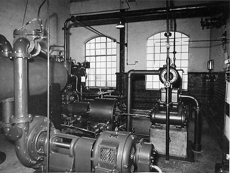 New electric pumps were installed at the Ballingdon Street sewage pumping station in the late 1940's. No. 2 pump, in the foreground, was installed in 1948. Behind that is what appears to be an older direct acting steam pump. In the rear, in front of the LH window, electric pump No. 2 is just visible; this was installed in 1946 to replace one of the older generation of steam pumps.